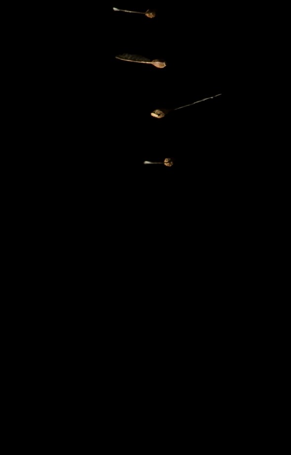 A Sycamore seed dropped in a dark room then lit with a speedlite set on multiple flash of 1/50th of a second.