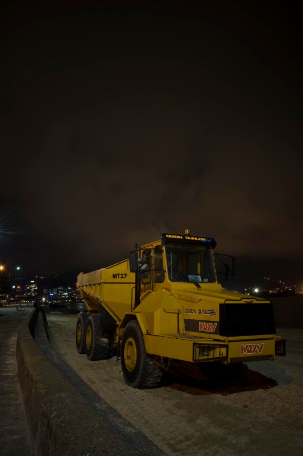 Replacing sand before a big beech volleyball tornament. The beech is entirely man made with sand trucked in from Golden Bay in the South Island.