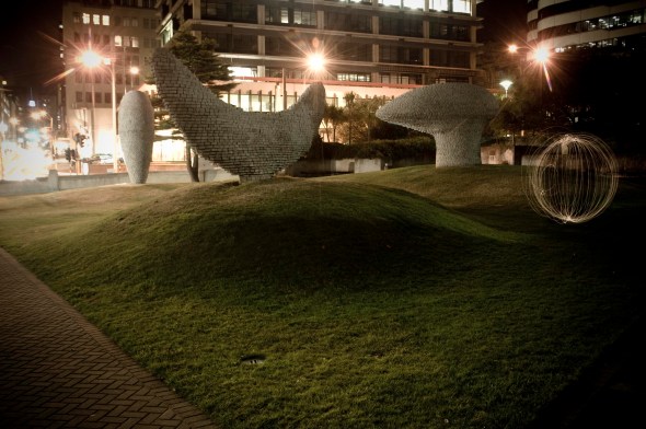This was the first shot at it and I ran into some big problems right from the start. This sculpture is directly behind “The Behive” (New Zealands parliament buildings) so I thought there might be some issues with security guards. In standard New Zealand fashion two burly security guards rocked up and asked what I was doing but in a kinda apolligetic “we are just doing our job” way and then wished me good luck and hoped I got some good pictures.