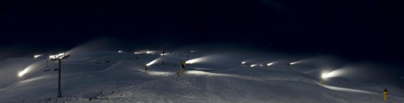 Snow machines making snow at Coronet Peak just before the head fell off my tripod… Suck!