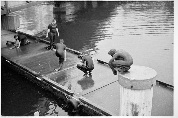 So I get there and start taking some shots when all of a sudden people start jumping off the wharf directly behind the sculpture…wtf… some sort of training for dive people I guess… They started doing circuits on the dock so it gave me a good opportunity to get some pics.