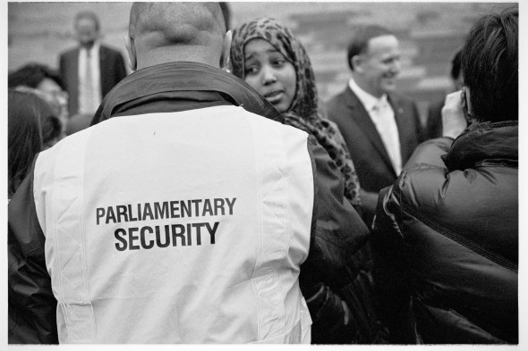 The funniest thing that happened was a dancer from a Salsa Dancing float tried to get her picture taken with the PM and had to run to catch up with her float which had left without her. unfortunately I was changing a roll of film at the time and missed shooting it…
