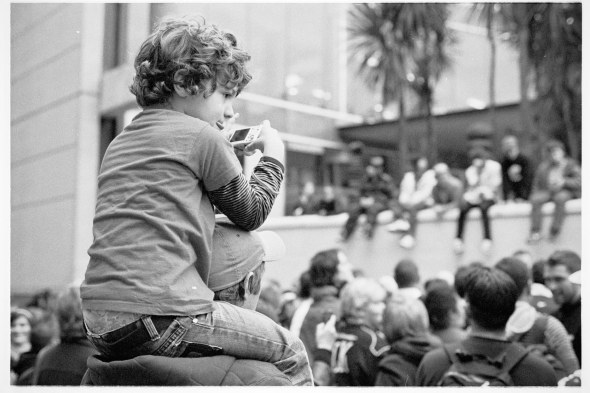 This kid had the right idea, get above the crowd…I need one of these (the person to sit on, not the kid) 🙂