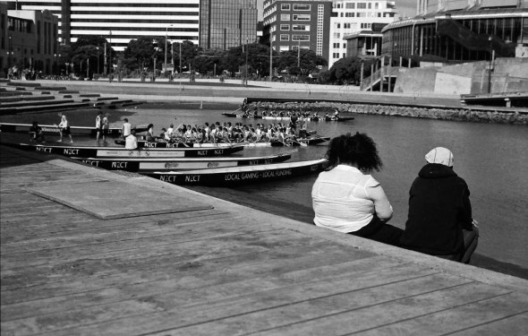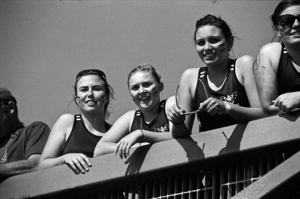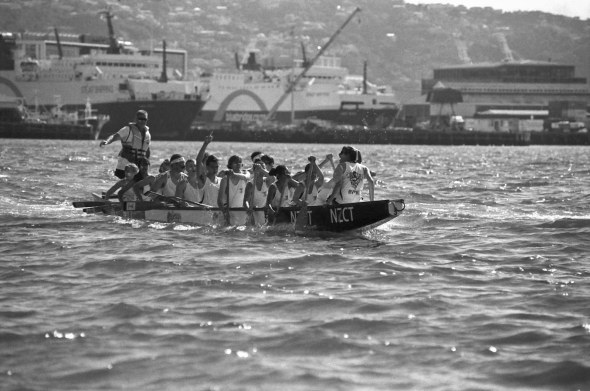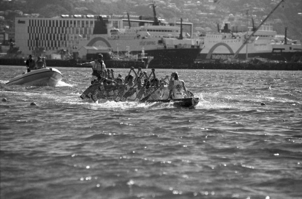 I had scoped out the best position to be the day before and just before the first race I went down under the bridge onto a floating pier and lined myself up with the middle of the only lane close enough to shoot down. Amusingly about a minute after I was in place one of the Dominion Post photographers came along… He stood on one side of me… Then the other side…Then back to the first side… At this point I was grinning like the Cheshire Cat (yes I have just finished reading Alice in Wonderland to Emily) as he stood beside me with his 500mm telephoto cause Id snaked his spot (small things amuse me).