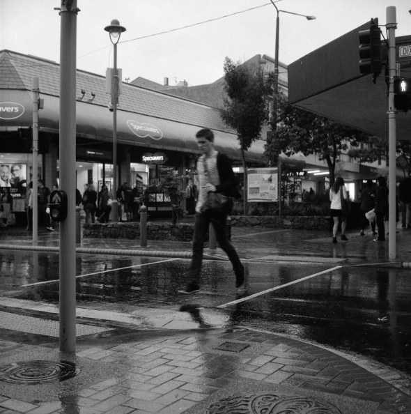 This was shot on a roll of Delta 3200 ISO Film pulled to 800 ISO. I ran out of film on a previous day (which was bright and sunny) and had to down rate the ISO of my remaining film, of course the next day I was out it was really dark and I could have used the extra couple of stops to freeze this shot… Oh well 🙂
