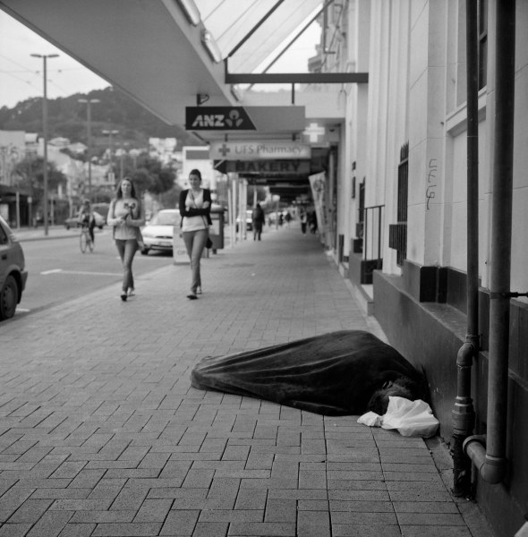 Most cities have at least one notorious homeless person who everyone knows of, Wellingtons is Blanket Man… He sits on Courtenay Place in a loincloth wrapped in a blanket all day every day. I guess he sleeps there too…