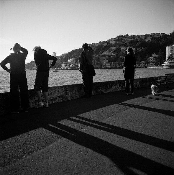 Now a Rolleiflex isn’t the best camera to take images of things far away so I settled on taking images of the people watching… However when I developed and scanned the film I did get one shot with an Orca in it (see image below between the two people on the left… If you cant see it I have enlarged it and it is the next image down).