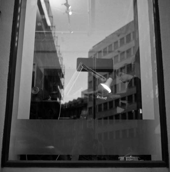 As I was walking past this window I noticed the girl inside doing alterations to a pair of jeans. She looked so happy I just had to take a shot… A polarizing filter would have been handy to take some of the reflection off the window but since I dont have one for Rollei it wasnt an issue.