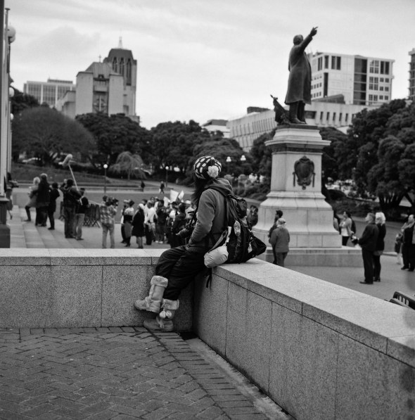 Protest about Burma’s human rights record in the background. Should have shot it a bit more wide open but you can already start to see the lens aberrations on the lower right hand side.