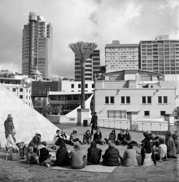 Spotted this guy taking a shot of the back of the Occupy Wellington tent site (at least that’s what I think he was taking)