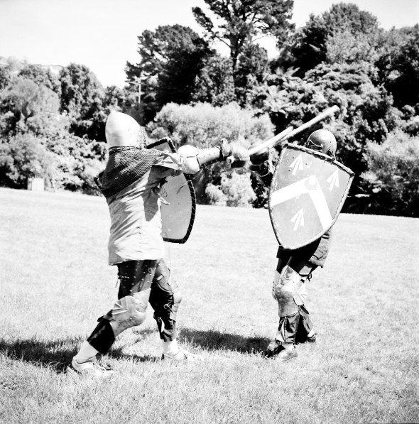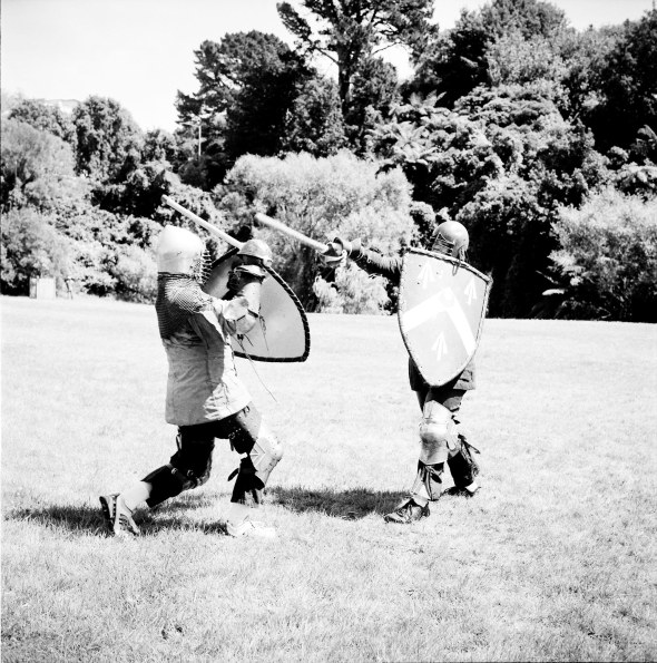 Heading into town last Sunday I noticed some heavily armoured people with swords at the park across the road from where I live… I quickly  pulled into the car park and went over and asked if it was OK to take some shots… They kindly obliged and went through a couple of their practice routines 🙂