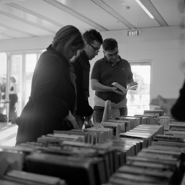 Book sales are great for taking shots on a Rollei. For a start everyone is looking at books and then with Rollei you are also looking down so people just assume you are also looking at books 🙂