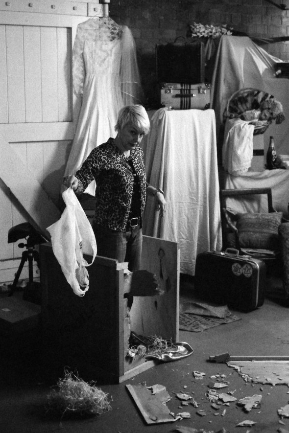 The main element of the set was the packing crate which I ended up making (and then destroying). The day I took the finished crate (unbroken) to Bevs we found out that breaking it was going to be a bit problematic. No matter how hard I stomped on the thing it just wouldn’t break, next came the hammer (that was possibly the smallest hammer I have ever seen) and after about 15 minutes it was starting to look a bit more demolished, although I managed to pull a muscle in my shoulder doing it (must be getting old).
