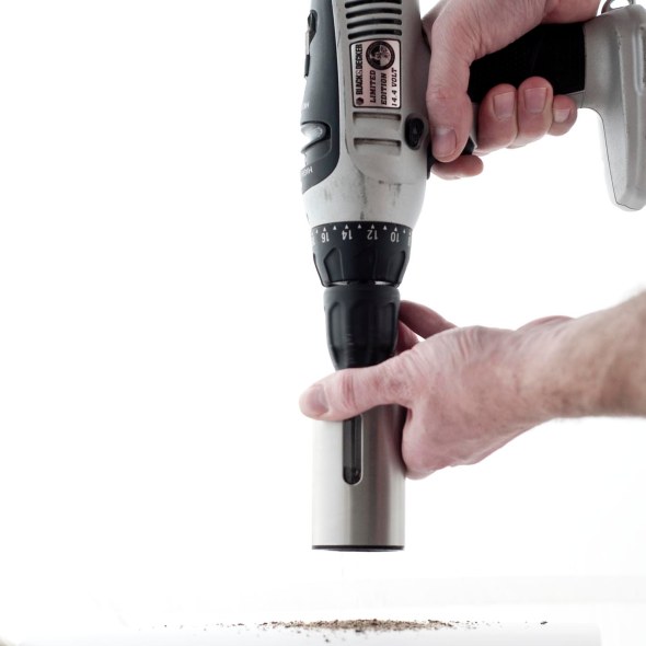Attach drill chuck to central column of pepper grinder.