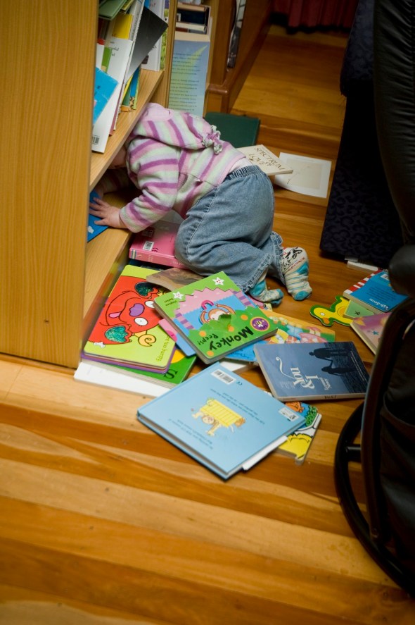 Samantha: Favorite place to be this week has been sitting in front of the book shelf looking at books, pulling washing of the clothes dryer and staring out the window at birds.