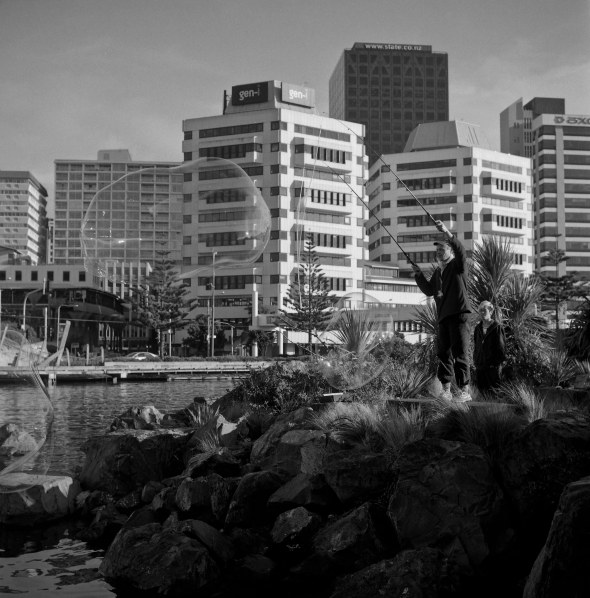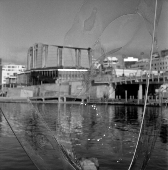 The weather is starting to head back to sunny even if there is still a bit of a chill in the air. These two girls were blowing bubbles at the back of Te Papa one evening as I was walking past. The last shot is an enlargement so you can see the bubbles 🙂