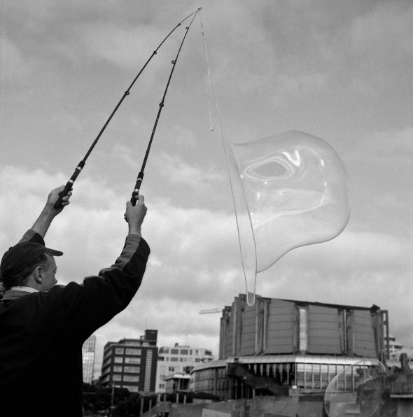 It was finally a nice day on Thursday so me and Sam went for a wander along the waterfront shooting after not being out for a couple of weeks. As we were walking past the rowing club we both noticed some rather large bubbles out across the inlet. Upon further investigation we came across the bubble maker who was testing out his bubble mixture. This is one of the few times I wished I was shooting colour…