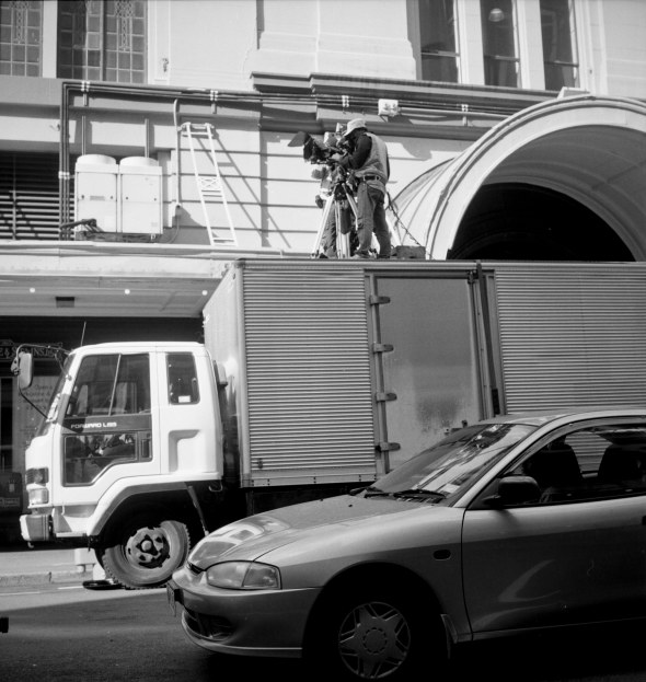 Caught these guys a couple of weeks ago filming a scene for a movie… This scene involved a bus fallen into a bomb crater… Guess it was mostly CG