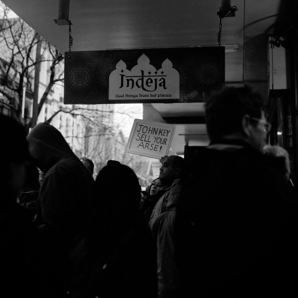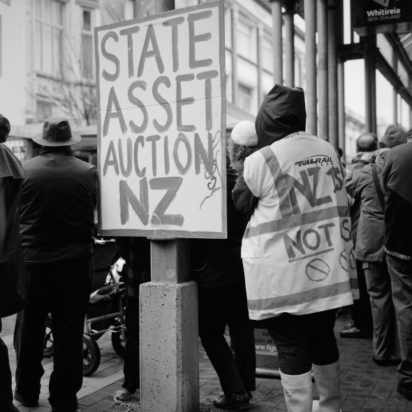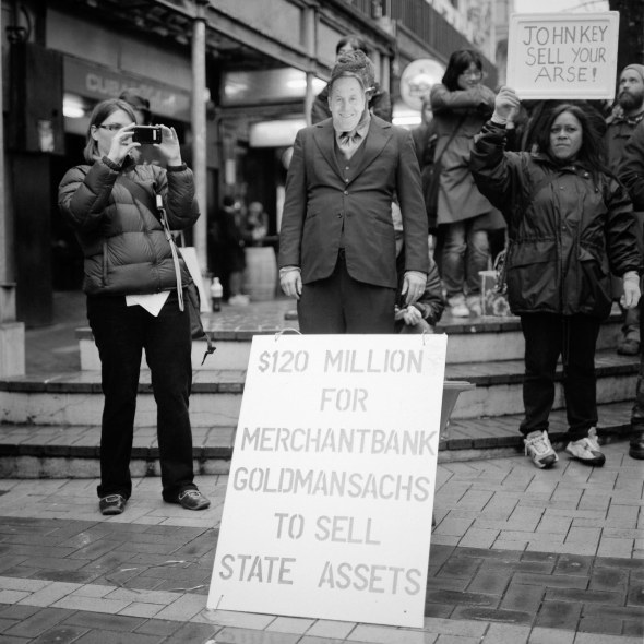 Protest held in Cuba Street Wellington to protest against the government selling off state owned assets.
