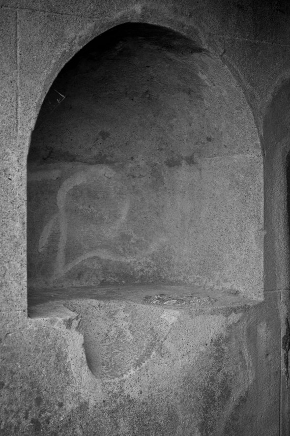 These were by far the most overgrown battlements and it looked like someone had been living in one of them. I especially liked how the metal shutters on one of them had rusted to look like lace.