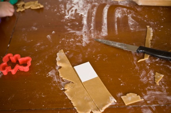 We made enough parts to make 4 gingerbread houses (since this was a trial run) and the rest got turned into a conglomeration of Christmas trees, teddy bears, people etc…