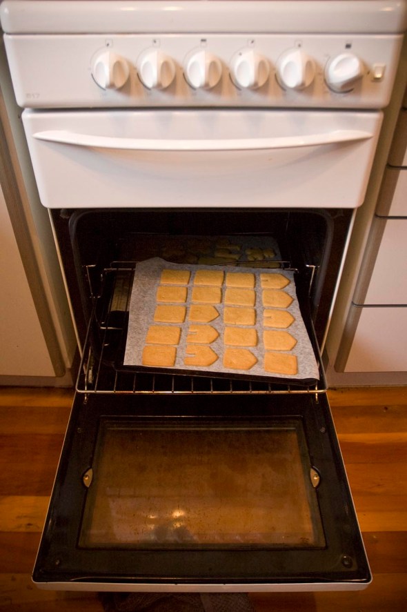Into the oven they went and 15 minutes later we had some slightly distorted but still entirely usable house pieces …