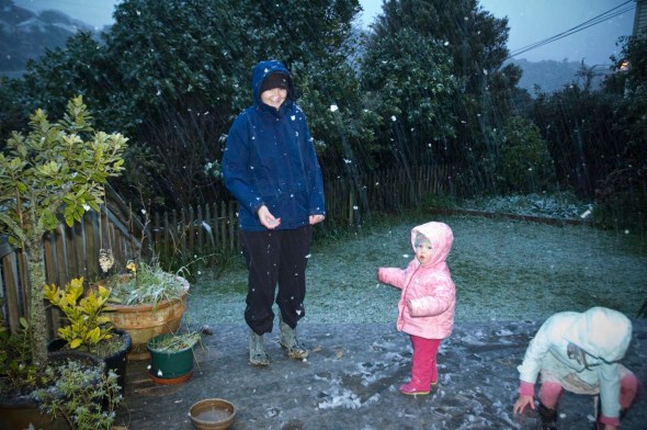 It’s unusual for it to snow enough for it to settle in Wellington but we had a couple of storms pass through and there is still snow on the ground this morning.