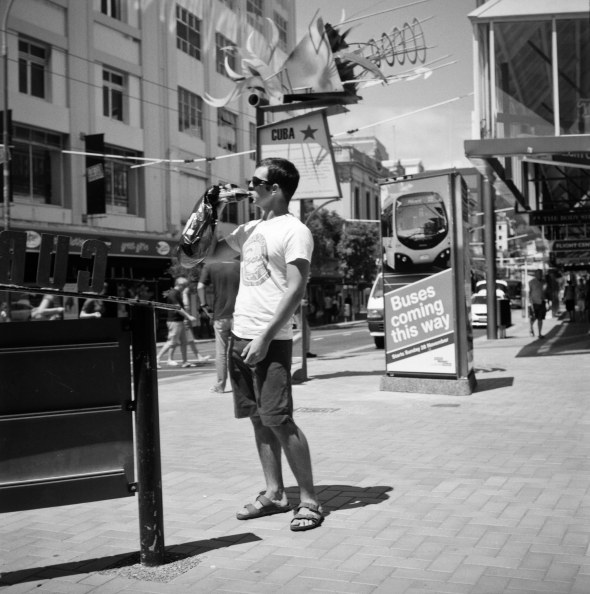 A large drinks producer was giving out samples at the bottom of Cuba Street… Missed out on the free sample but got a shot of it being drunk instead.