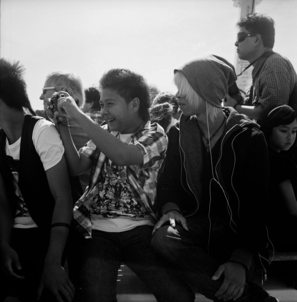Enclosed spaces where everyone is together are great, people don’t even realise they are having their photo taken… Not the best shot and could do with a better crop but I like the expression and interaction.