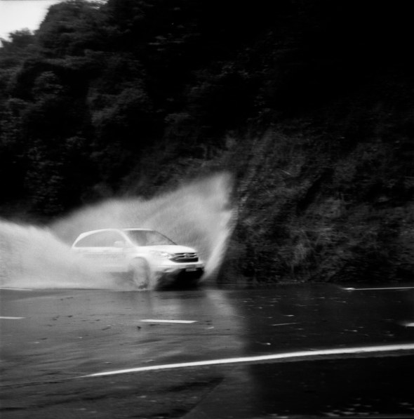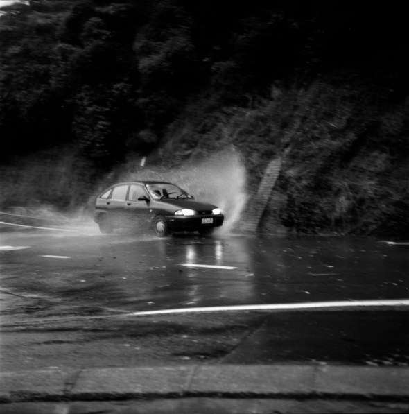 Driving home from work last Sunday I drove past a drain that consistently floods and in the torrential rain decided to pull over (risking the wrath of being home late) and take some images out the window of cars going past through the large puddle.