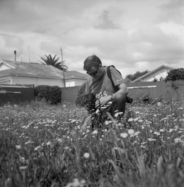 A shot of Fergus (Cunningvision) and his Yashica 124G TLR at an abandoned lawn bowling place by where he lives in Petone.