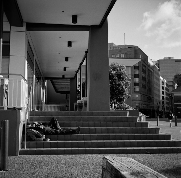 This guy was asleep outside the St James Theatre on Courtenay Place. This is the same place where I took the image of the drunks the day after.