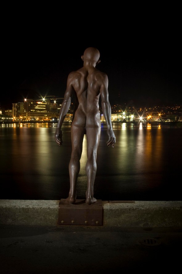 Diving Man Statue with three pops from from different angles with speedlite on the end of a monopod.