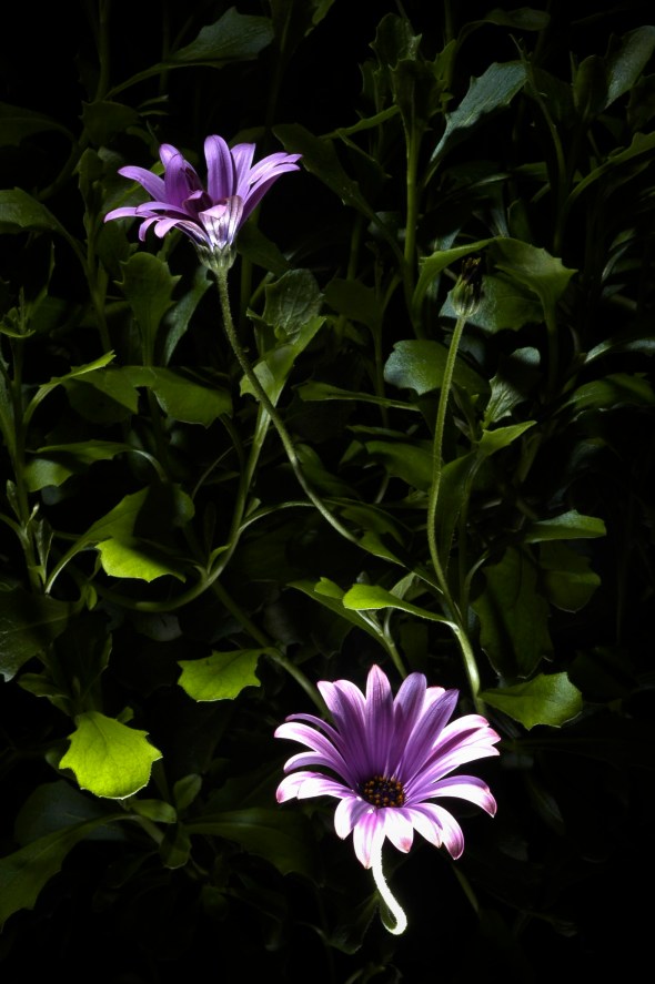Flowers in my back yard lit with 2 speedlites… One from directly below at full power (Nikon SB16) and one in from the left at 1/4 power (Nikon SB80DX)